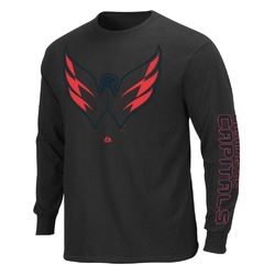 Made of 100% cotton this tee has an automatic cool vibe with its reflective soft density screen print decoration. Printed on a black base tee the Washington Capitals name and logo stand out with limited and muted colors and a secondary team name print down the left sleeve.r
