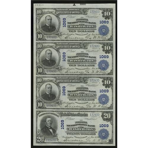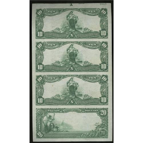 <B>Washington, DC</B></I> - $10-$10-$10-$20 1902 Plain Back Fr. 625/651 <B>The National Metropolitan Bank</B></I> Ch. # 1069 Uncut Sheet<BR>This beautiful sheet has bold pen signatures and dark inks resting on fresh white paper. The sheet is well nigh perfect with no folds or bends whatever and it easily becomes one of the nicest large size sheets we have ever offered. This will likely not be an inexpensive item, but real quality seldom is. <B>Gem Crisp Uncirculated.</B></I><BR><BR><b>Shipping:</b> Coin/Currency (<a target="_blank" href="http://www.heritageauctions.com/common/shipping.php">view shipping information</a>)