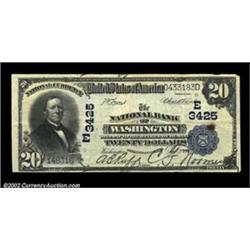 Washington, DC - $20 1902 Plain Back Fr. 651 The NB of Washington Ch. # (E)3425Bright Very Fine exam
