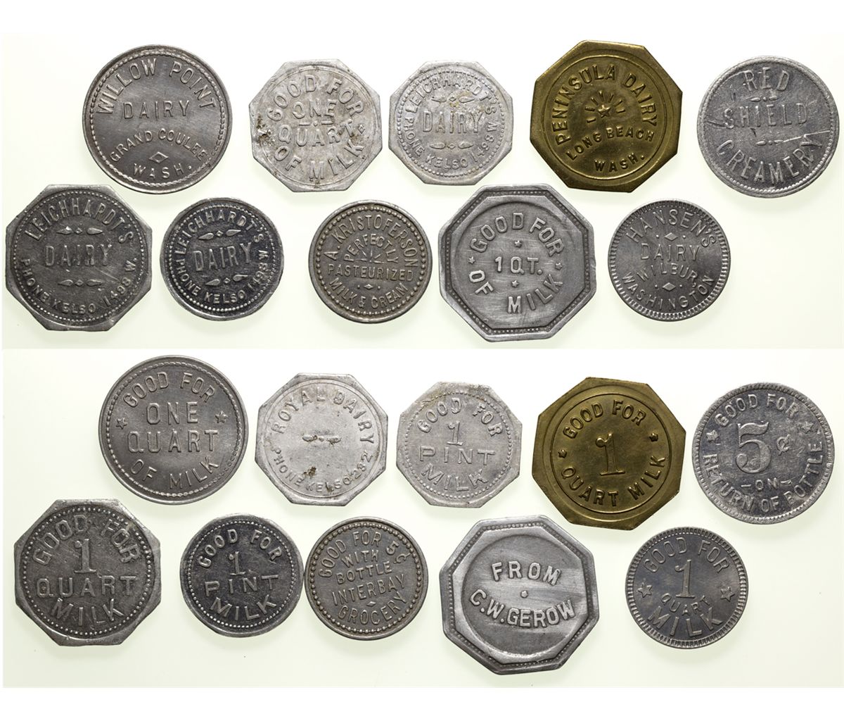 Lot of 10: from Menlo, Long Beach, Kingston, Grand Coulee, Wilber, Kelso and Seattle. -60719