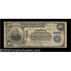 <TABLE cellSpacing=0 cellPadding=0 width="100%" bgColor=#000000 border=0><TBODY> <TR><TD width="100%"><TABLE cellSpacing=1 cellPadding=3 width="100%" border=0><TBODY><TR><TD width="100%" bgColor=#79735c><FONT face=arial color=#ffffff size=3><B>Description</B> </FONT></TD></TR><TR><TD width="100%" bgColor=#ffffff><FONT face=arial size=2><B>Washington, GA</B></I> - $10 1902 Plain Back Fr. 626 <B>The Citizens NB</B></I> Ch. # 8894<BR>Washington's second and considerably smaller bank. Despite a respectable issue (albeit one which ended when the bank went out in 1927), and despite the four examples recorded by Kelly, all must be very tightly held, as our records of over 275,000 offerings of National Bank Notes at public sale since 1943 fail to reveal even one appearance of any kind by any note from this bank. <B>About Fine.</B></I> (2,000-4,000 ) </FONT></TD></TR></TBODY></TABLE></TD></TR></TBODY></TABLE><BR><TABLE cellSpacing=0 cellPadding=0 width="100%" bgColor=#000000 border=0><TBODY><TR> Important notice: Heritage usually auctions material at the rate of 200-250 lots per hour. On some occasions eBay Live bid software or the Internet may not be able to keep up with the pace of the auction. We recommend placing a realistic absentee bid now as insurance to avoid disappointment. Occasionally the auctioneer may eliminate or reject an eBay Live bid, and the auctioneer may also reopen a lot after the close of the eBay live bidding (usually because we missed an audience bid), and may reject your bid even if it shows you as the winning bidder. By bidding via eBay Live, you agree that Heritage may award the lot to another bidder at its sole discretion under the circumstances described above or any other reasonable circumstances. Also please note that all Heritage lots purchased through eBay Live carry a 20% Buyer's Premium. Please make sure you read the Terms and Conditions before you bid.</TR></TBODY></TABLE>