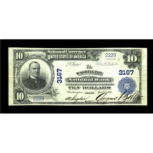 <B>Washington, KS</B></I> - $10 1902 Plain Back Fr. 624 <B>The Washington NB</B></I> Ch. # 3167<BR>D.C. Snyder and August Soller, signed this note with much gusto and their signatures remain bold. The ink used in August's signature has started to burn through the paper, though this is clearly the only issue worthy of mention on this attractive and original note. <B>Very Fine.</B></I><BR><BR><b>Shipping:</b> Coin/Currency (<a target="_blank" href="http://www.heritageauctions.com/common/shipping.php">view shipping information</a>)
