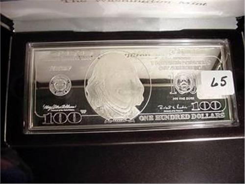 Washington Mint $100 Pure Silver 4 oz. Note in Presentation Case