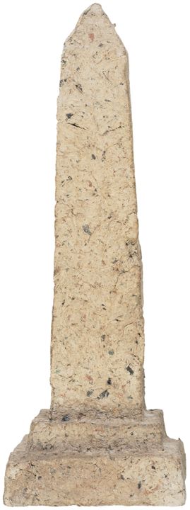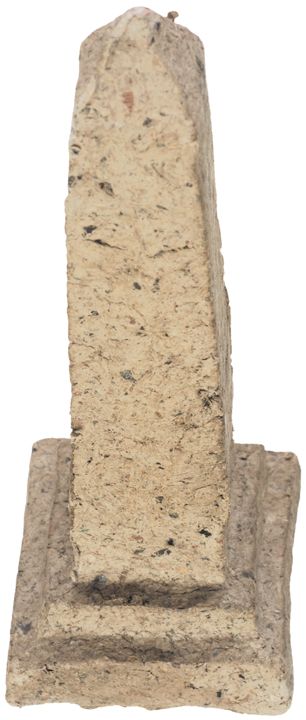 This Macerated Currency figure, made in the shape of the Washington Monument, measures 6.25” tall by 2.25” at the square shaped base. A small partial paper label portion is attached to the base of the monument. A patriotic form of Macerated Currency, in excellent quality and ready for display on one’s desk.