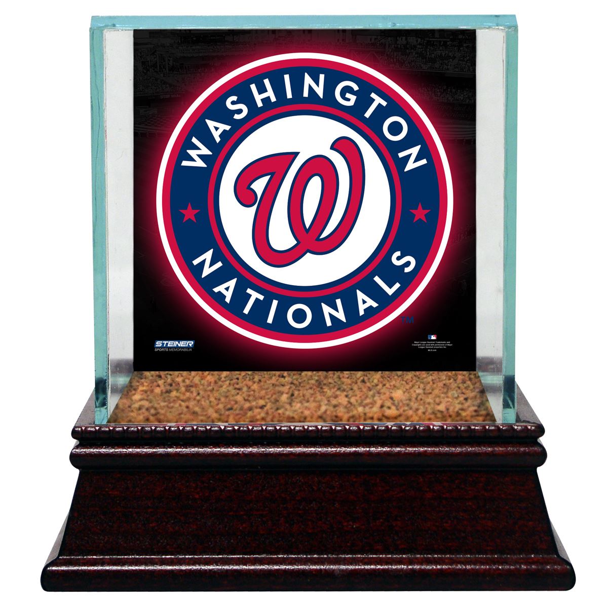 Washington Nationals Glass Single Baseball Case with Team Logo Background and Authentic Field Dirt Base (MLB Auth)
