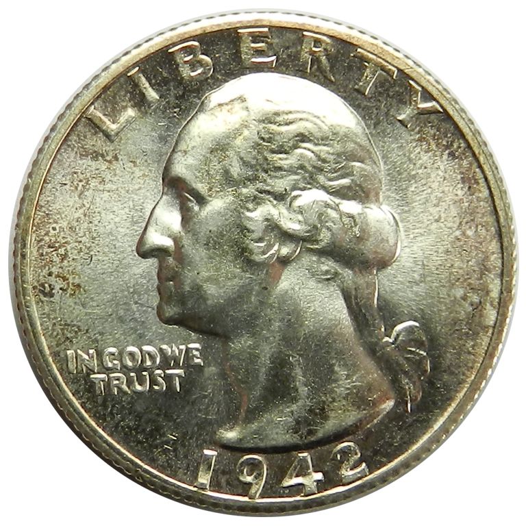 Washington Quarter, 1942-S. Better date. Lovely golden-russet peripheral toned Choice BU, frosty.