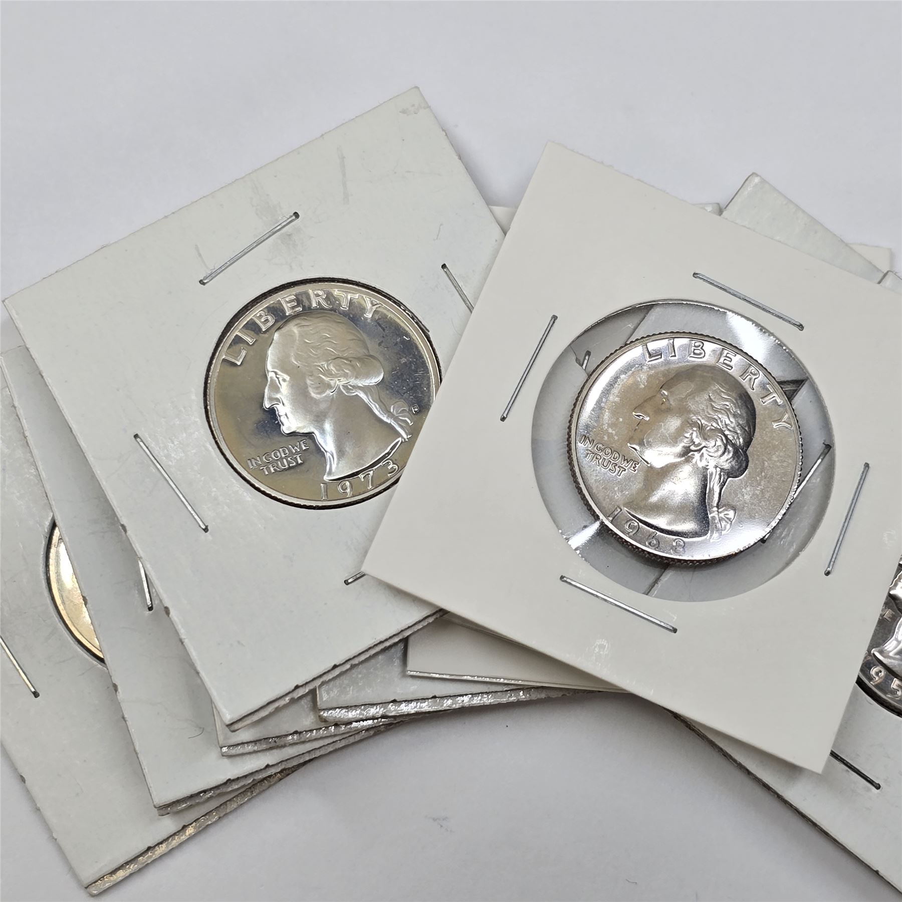 Lot of (10) Washington Quarters Ranging from 1956-1978. (1) silver, (2) Bicentennial, possible proof coins. All look to be uncirculated and possibly MS condition.& nbsp;