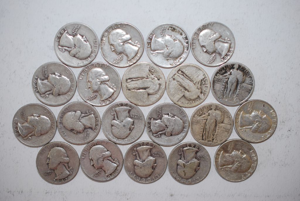 Washington Quarter; Various Dates, Conditions & Denominations; Lot of 20 Silver; EST. $120-140