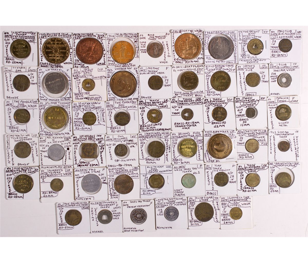 Lot of 51: transportation, amusement and trade tokens. See photograph and inspect lot, great starter collection. -60831