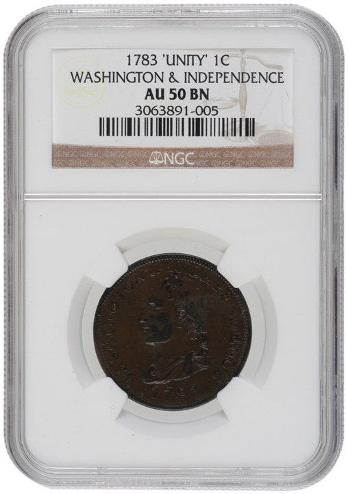 1783 Washington “UNITY STATES” Cent. NGC graded About Uncirculated-50 Brown.