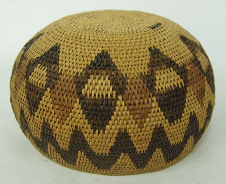 Early 1900s, Classic rounded single rod open bowl with polychrome geometric designs. Very good condition. 4" x 7" BKT