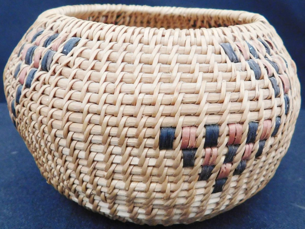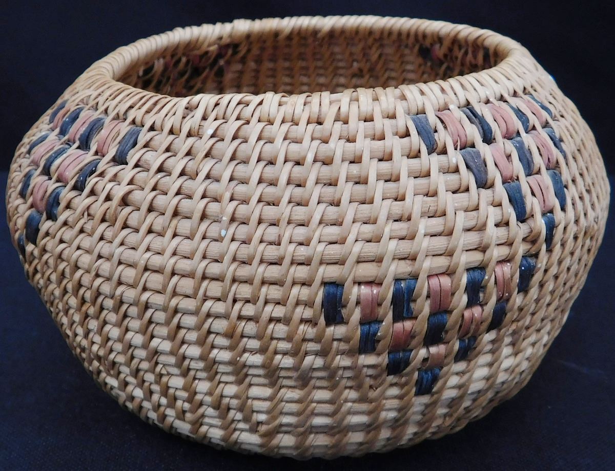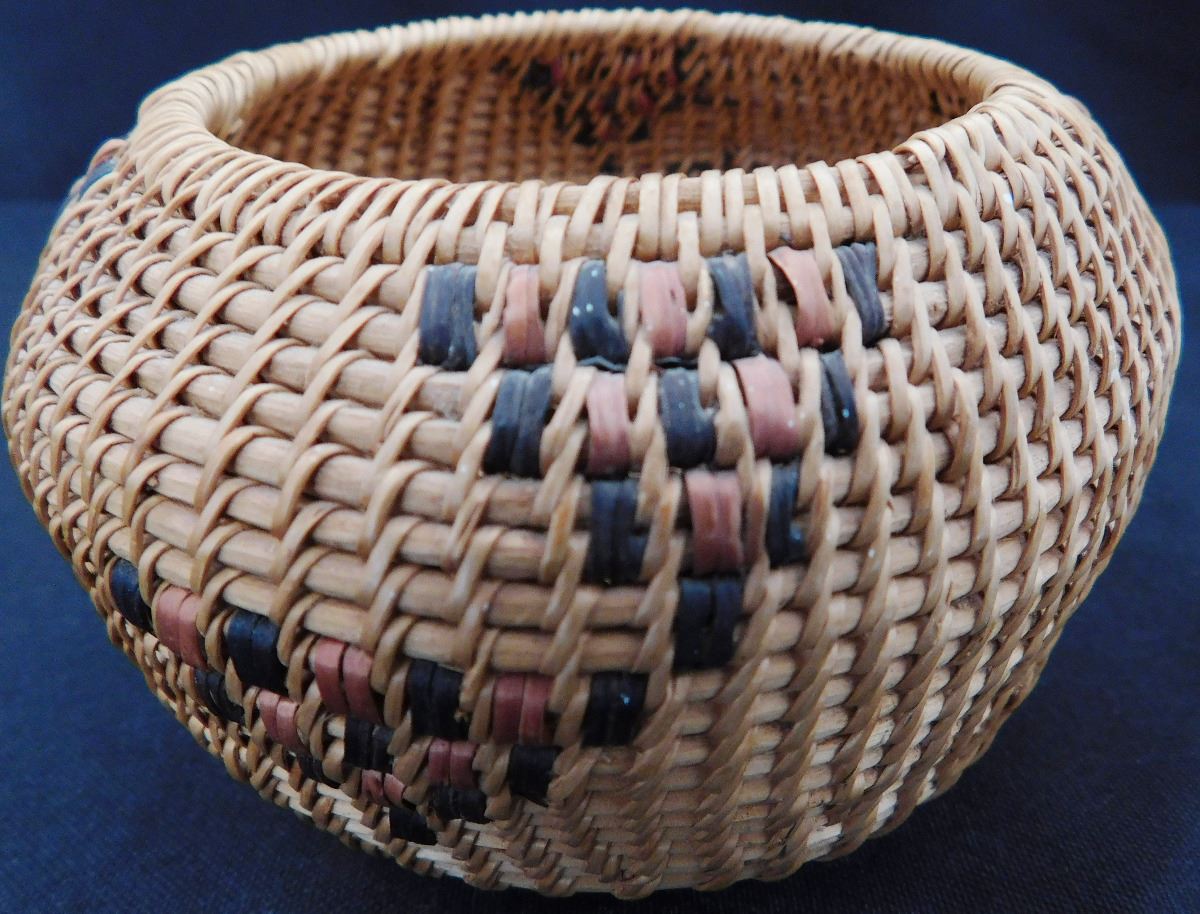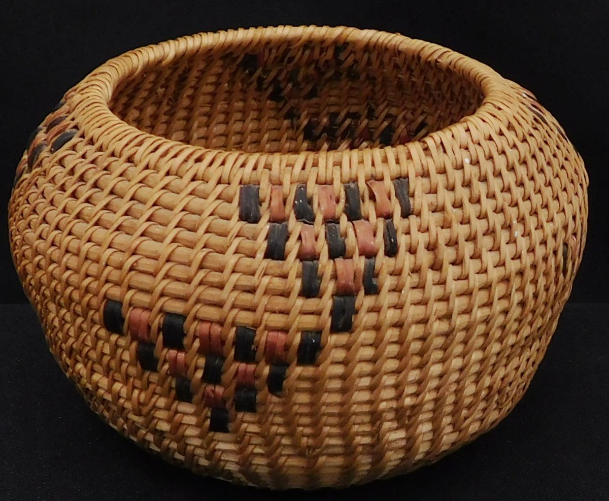 This Washoe Indian Basket is believed to be from the 1900's. It measures 5 x 3 inches and is made from willow and red bud. There is some minor paint spatter. See images