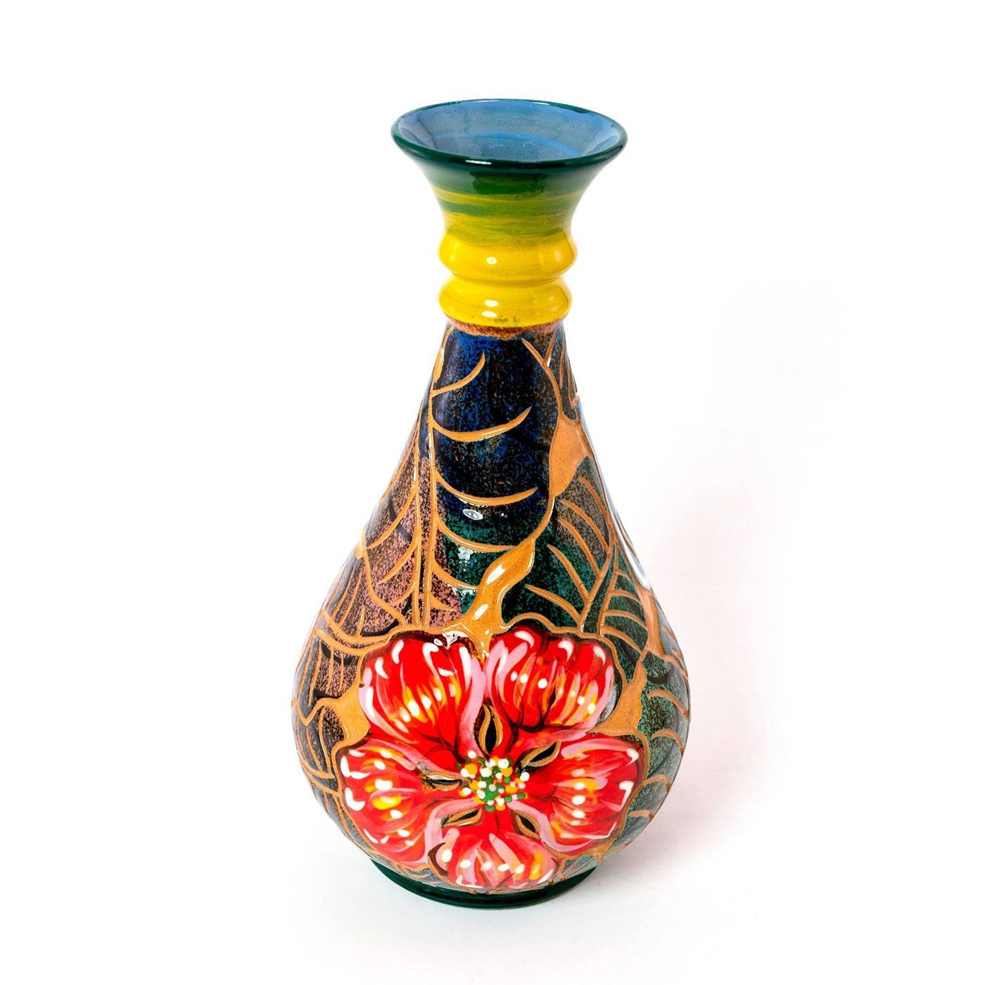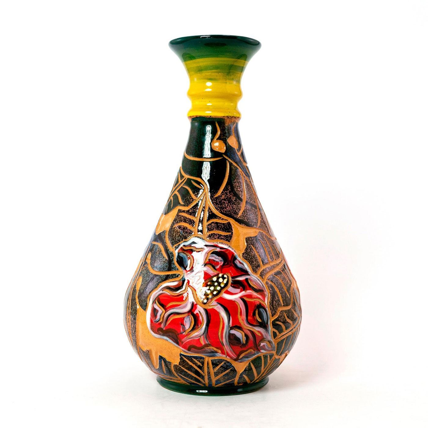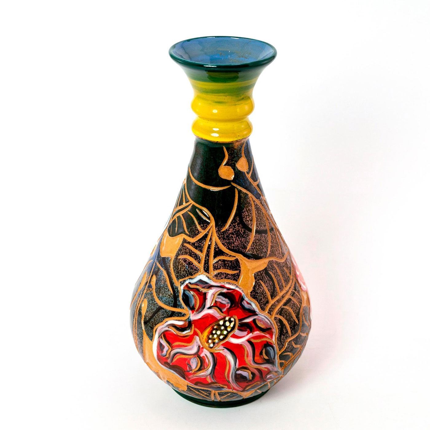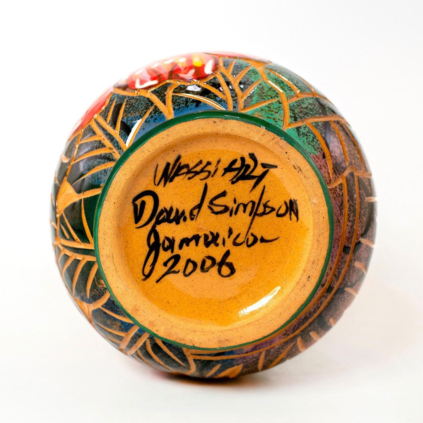 Beautiful, colorful, red, blue, yellow and beige. Signed by artist.