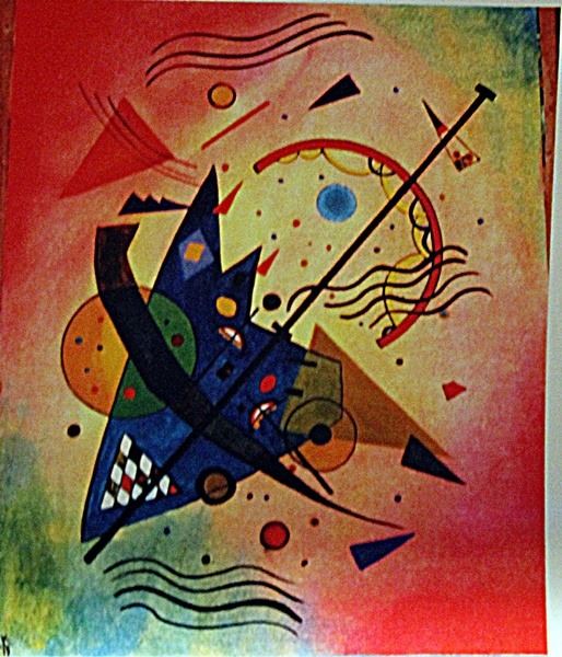 Oil on paper in the manner of in the manner of Wassily Kandinsky "Composition", circa 1919, private collection, unframed dimensions approximately 15x12. Wassily Kandinsky, Russian in full Vasily Vasilyevich Kandinsky (born December 4 [December 16, New Style], 1866, Moscow, Russia—died December 13, 1944, Neuilly-sur-Seine, France) Russian-born artist, one of the first creators of pure abstraction in modern painting. in the manner of successful avant-garde exhibitions, he founded the influential Munich group Der Blaue Reiter (“The Blue Rider”; 1911–14) and began completely abstract painting. His forms evolved from fluid and organic to geometric and, finally, to pictographic (e.g., Tempered Élan, 1944).