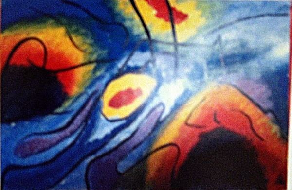 Oil on paper in the manner of Wassily Kandinsky "Improvisation 44", circa 1915, private collection, unframed dimensions approximately 19x13. Wassily Kandinsky, Russian in full Vasily Vasilyevich Kandinsky (born December 4 [December 16, New Style], 1866, Moscow, Russia—died December 13, 1944, Neuilly-sur-Seine, France) Russian-born artist, one of the first creators of pure abstraction in modern painting. in the manner of successful avant-garde exhibitions, he founded the influential Munich group Der Blaue Reiter (“The Blue Rider”; 1911–14) and began completely abstract painting. His forms evolved from fluid and organic to geometric and, finally, to pictographic (e.g., Tempered Élan, 1944).