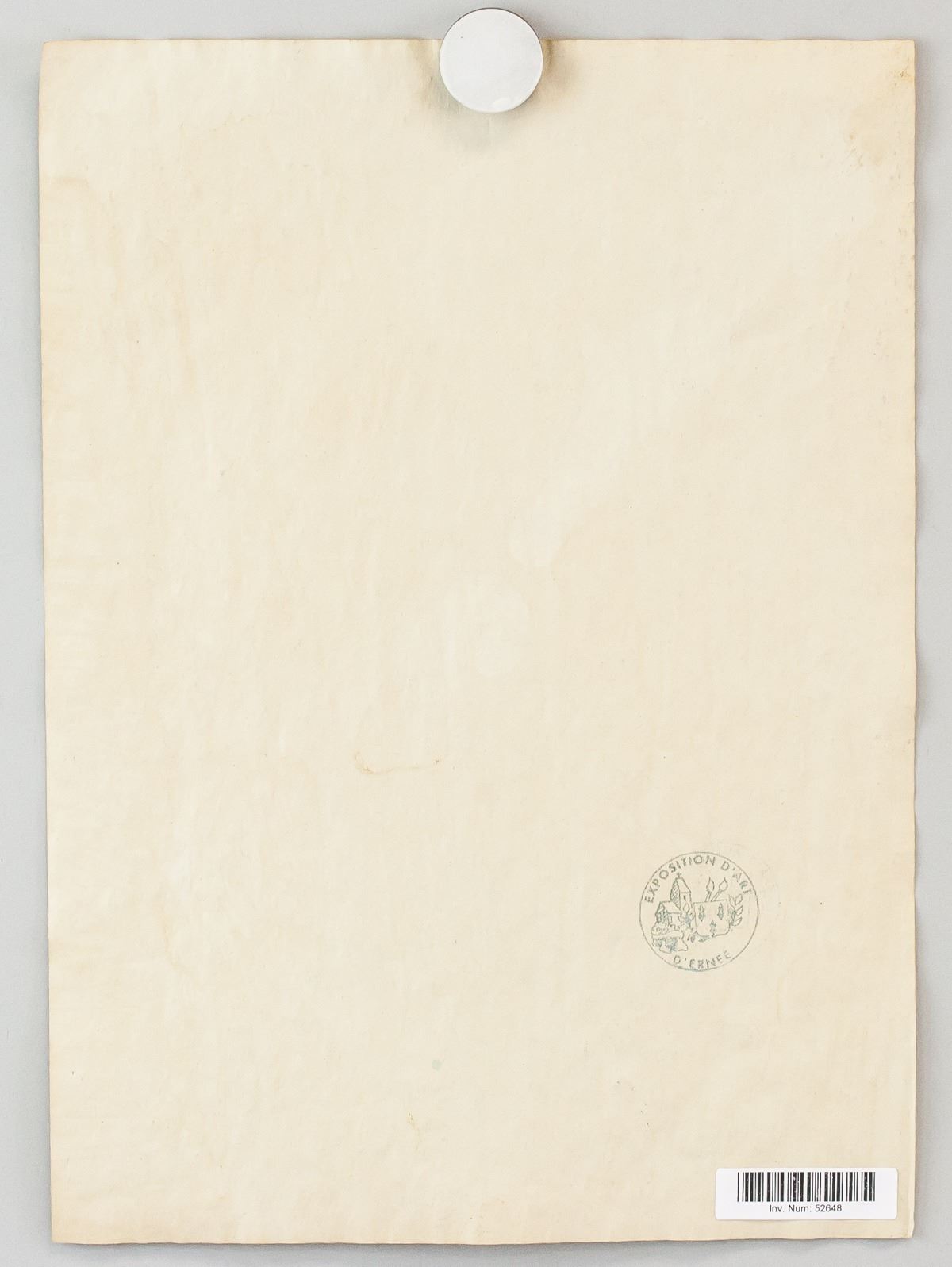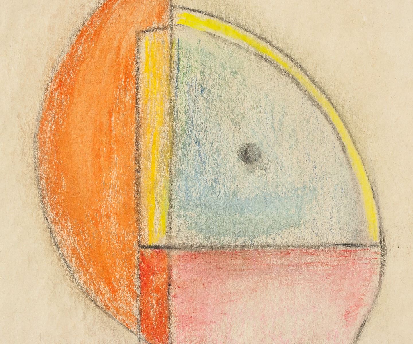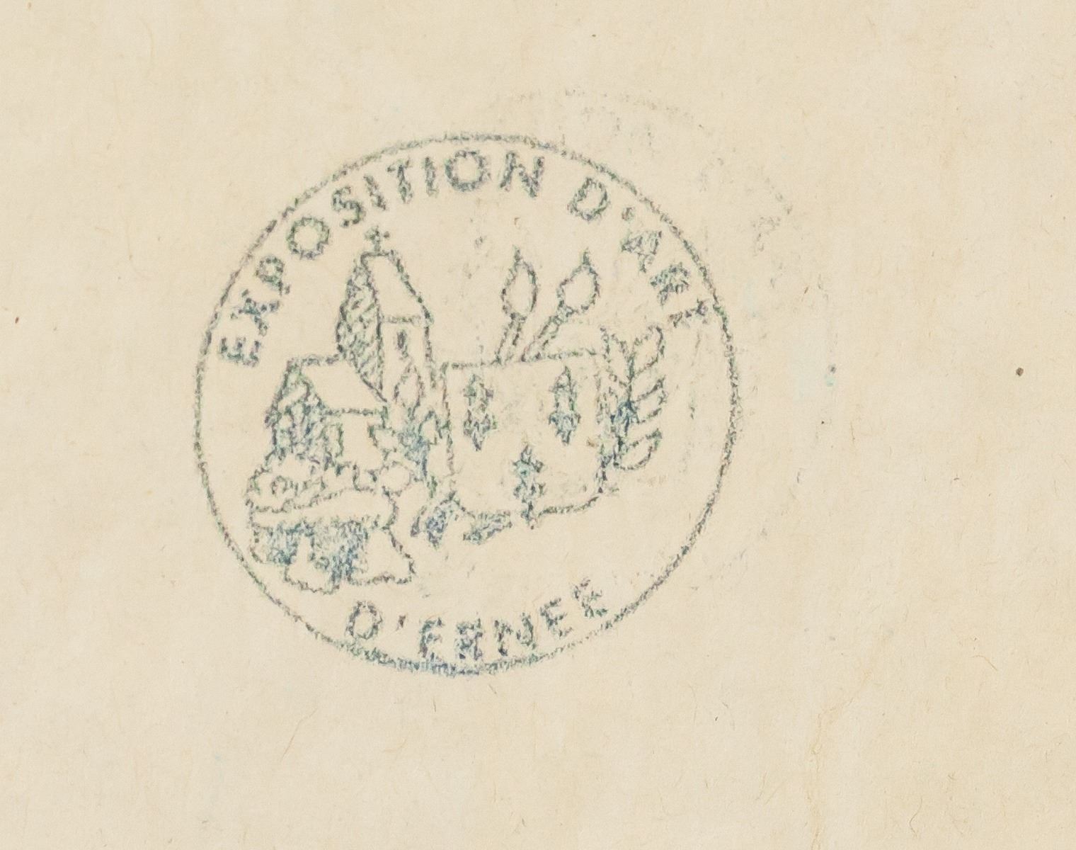 Chalk and pastel on paper. Featuring geometric abstract composition. Signed "K" in the bottom left corner, with "30" inscribed beneath the signature. "EXPOSITION D'ART D'FRANCE" stamped on verso. Attributed to Wassily Kandisky (1866-1944, Russian). 29 x 21 cm (11.5 x 8.25 in)