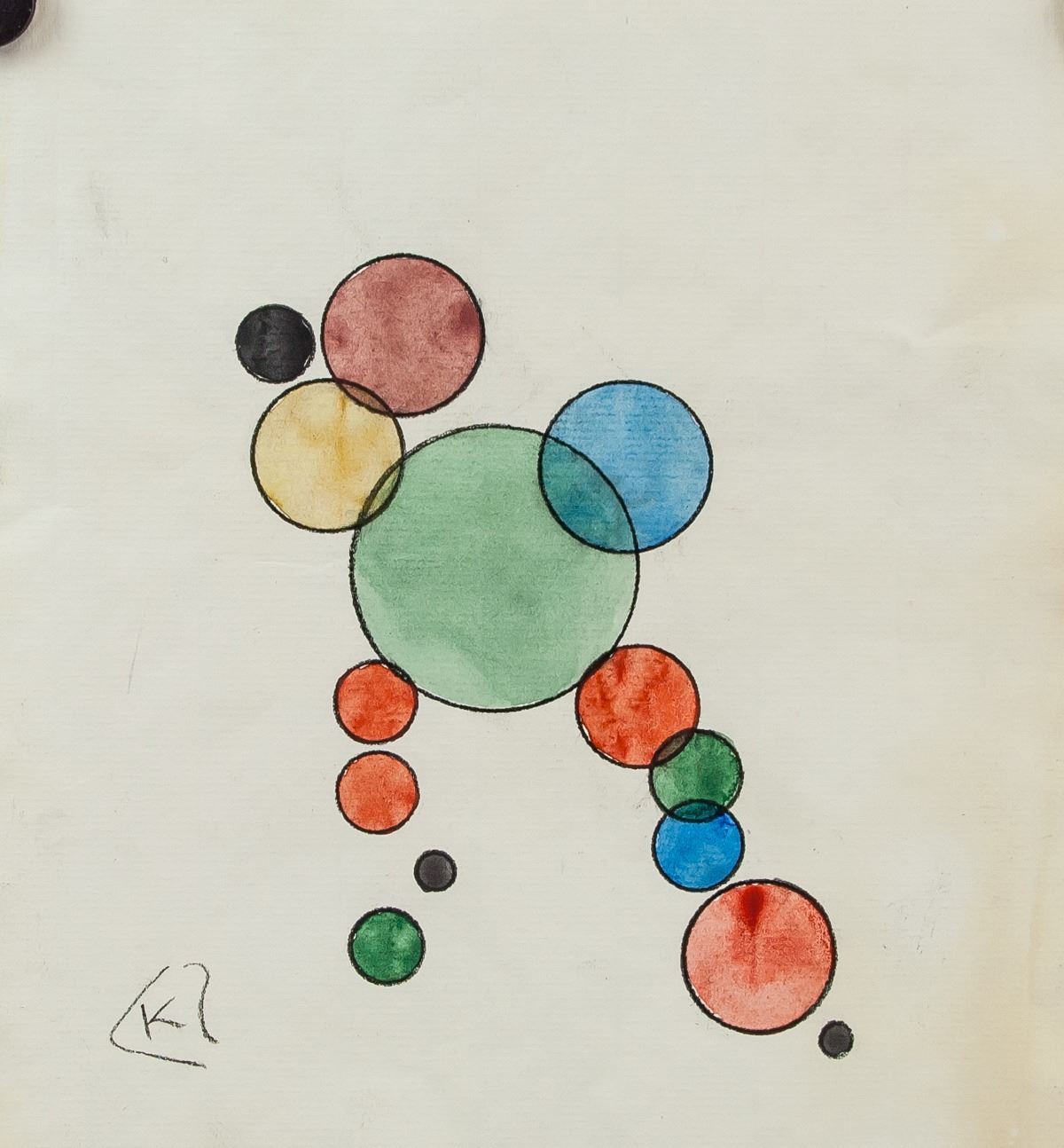 Ink and watercolor on paper. Featuring an abstract expressionist composition. Signed with monogram on the lower left corner. Attributed to Wassily Kandinsky (1866-1944, Russian). 22 x 20.5 cm (8.7 x 8.1 inches). PROVENANCE: Upper New York estate
