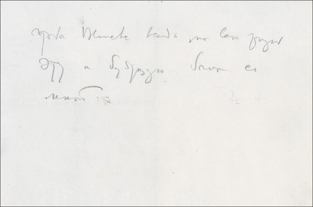 Pioneering Russian artist (1866–1944) who takes a place among the seminal figures in the development of abstract art. In addition to his influence as a painter, he was also one of the original instructors at the Bauhaus. Brief unsigned and untranslated pencil note, in Russian, on an 8.25 x 5.5 light blue sheet. Intersecting mailing folds, and some light wrinkling, otherwise fine condition.