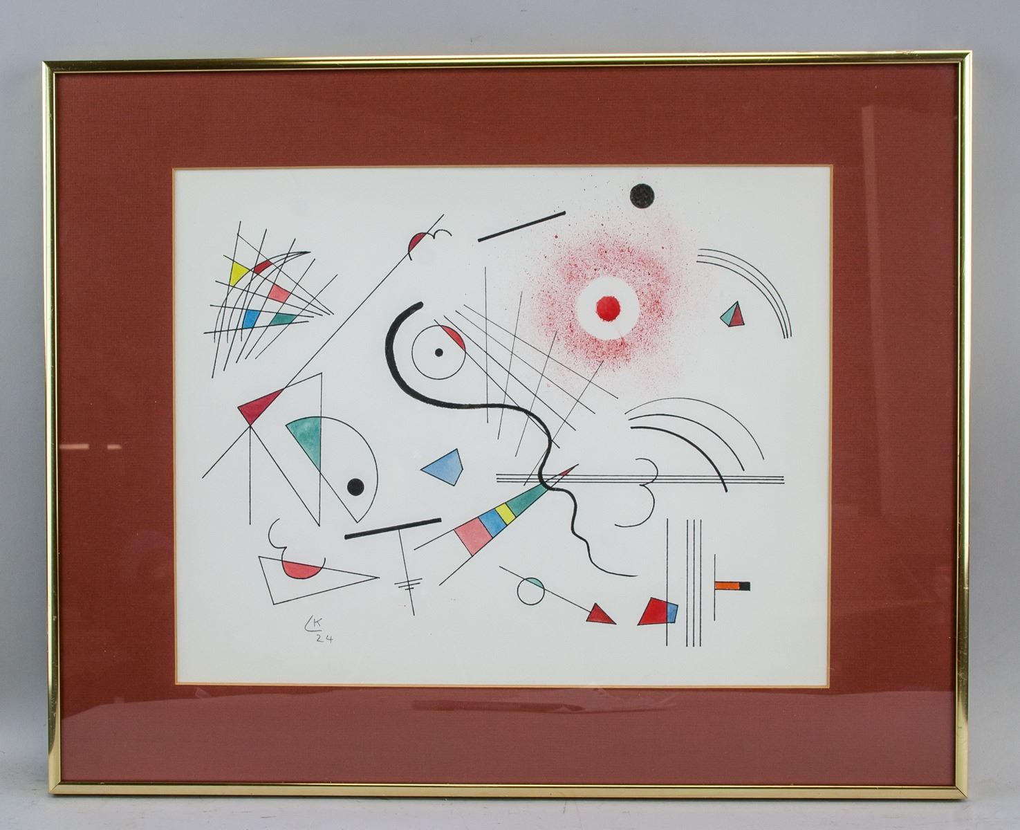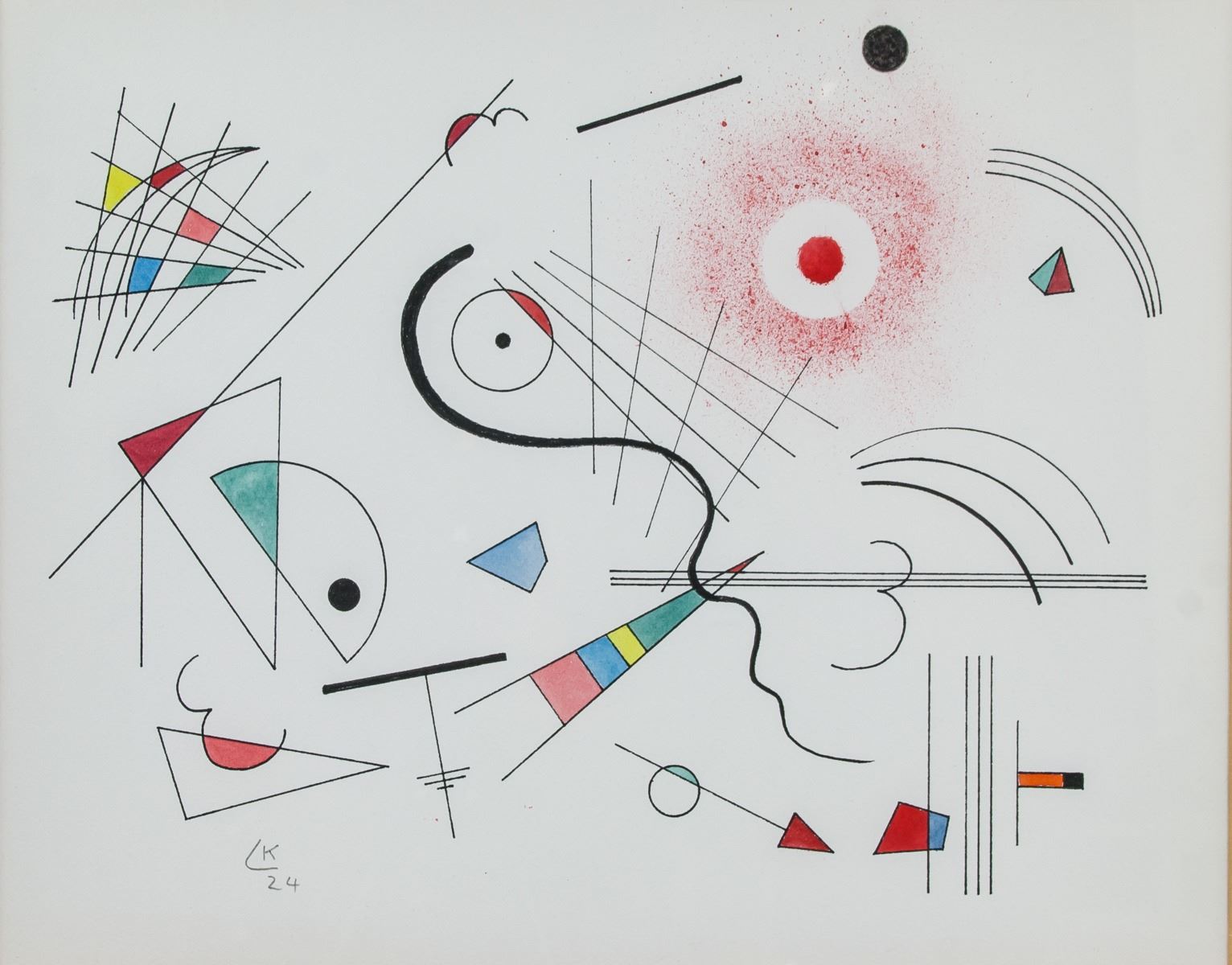 Mixed media on paper, newly framed. Featuring an abstract surrealist composition. Signed with monogram on the lower left corner. Attributed to Wassily Kandinsky (1866-1944, Russian) 28.5 x 36 cm (11.2 x 14 inches). Frame size: 41 x 51 cm, 16 x 20 inches). PROVENANCE: Southern Ontario estate