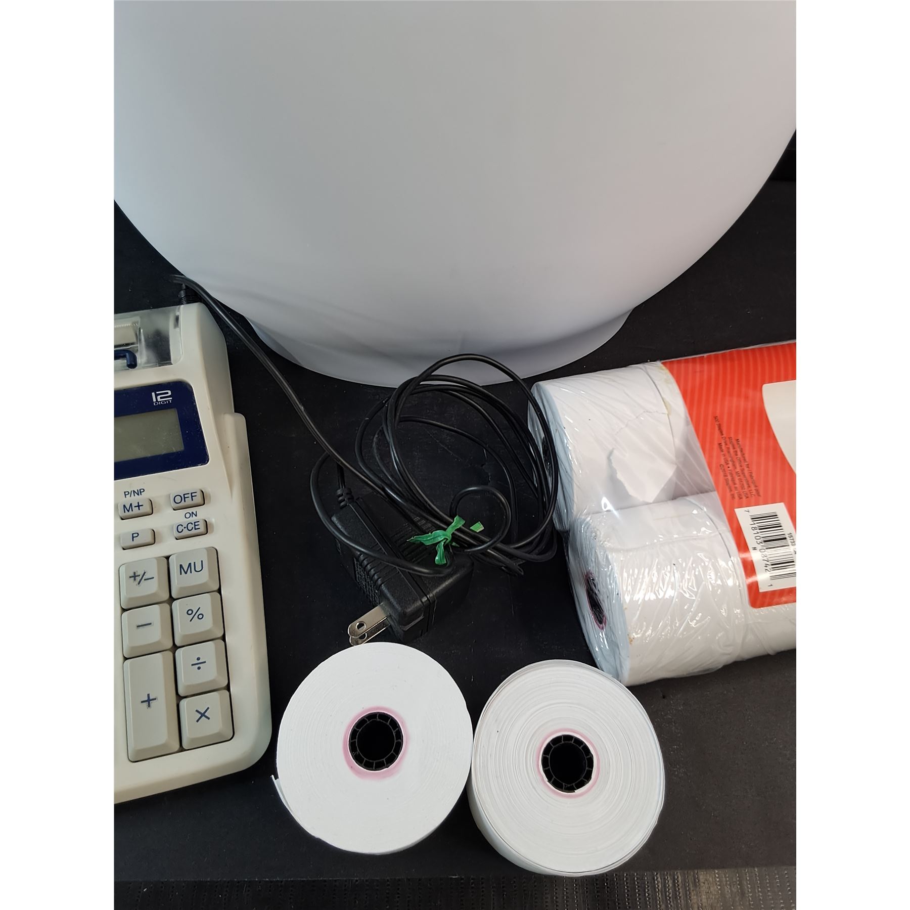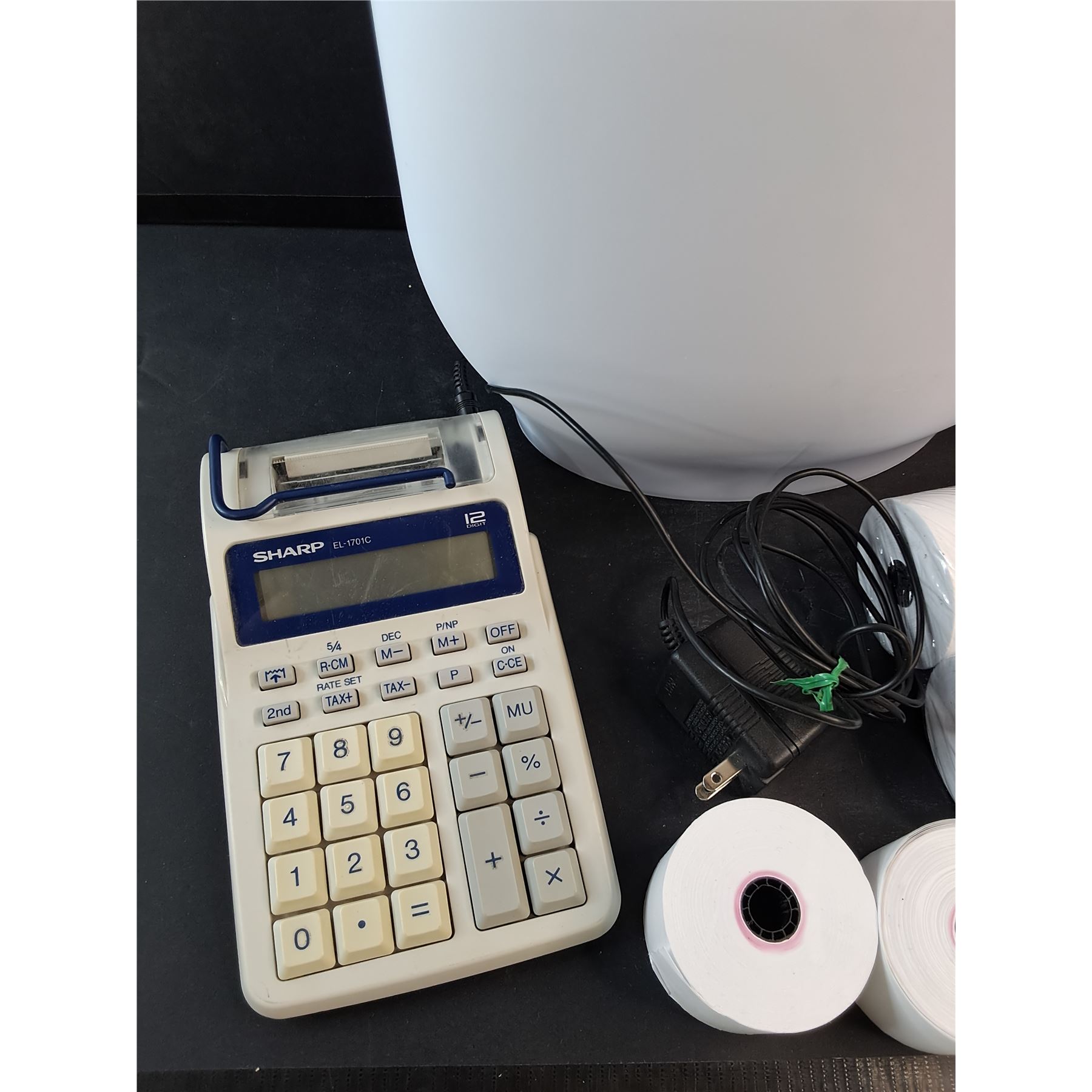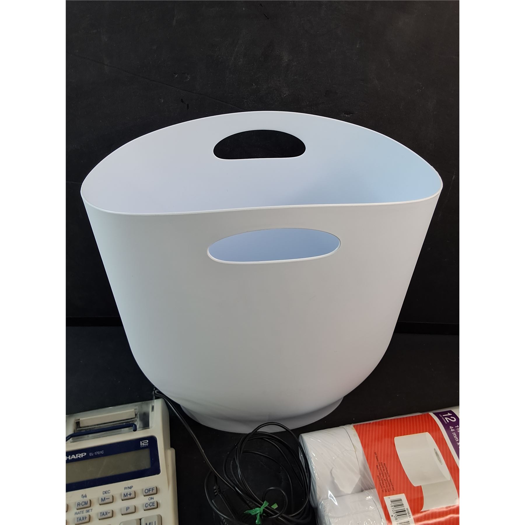 Waste Paper Basket, Paper Rolls, Sharp Calculator Printer - Powers On, As Is