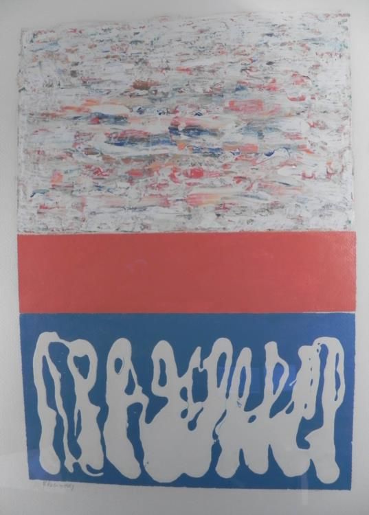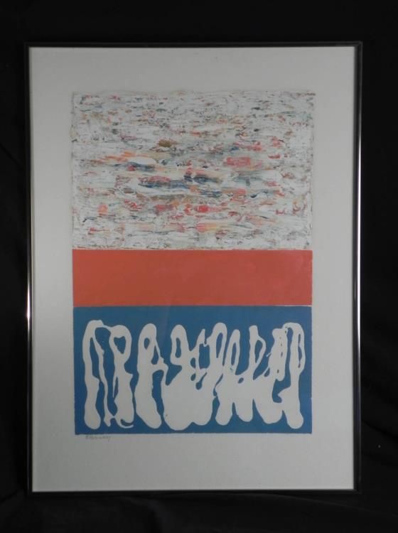 Offered is a Wasyl Kacurovsky framed signed original piece of artwork. It is done in mixed media, paint on canvas and another material. It is framed with SUV Plexiglas. --- Artist: Wasyl Kacurovsky - Signature: Kacurovsky in pencil in bottom left corner - Title: untitled - Medium: mixed media, paint on canvas and another material- Sheet size: 22"x30" - Frame: 23"x31" - Year: 1970's - Condition: Excellent --- Universal Live has been entrusted by the estate of Wasyl Kacurovsky to offer his personal artwork for public sale. This represents a treasure trove of his personal work as submitted by his nephew, the administrator of his estate. It was his wish and legacy that others should enjoy what he enjoyed. --- Wasyl Kacurovsky (1905-2000) worked in oil paints and mixed media, created sculptures that puzzled and entertained, and painted rocks and baseball caps. His work mixed shapes, textures, colors, and media, and focused particularly on modern art. Born in 1905 in North Dakota, Wasyl and his family shortly returned to Czechoslovakia, where he spent most of his life in Prague. He attended boarding schools as a youth and graduated from the Prague School of Economics in 1930. He remained in Prague during the German occupation, but fled when the war ended and Soviet troops began their takeover. After spending 4 years in refugee camps, he eventually made it to Chicago, where he began experimenting with art, particularly modernism. In 1972 he met several other like-minded Ukrainian artists and opened the Ukrainian Art Institute, where he was the curator. Over the years he created more than 200 oil paintings along with a great many other pieces of work. "His paintings are intellectual and deliberate, yet highly experimental in his use of technique and medium within the boundaries of a canvas". Mr. Kacurovsky passed away in 2000 in Chicago. His works were mainly sold and displayed in art galleries around Chicago.
