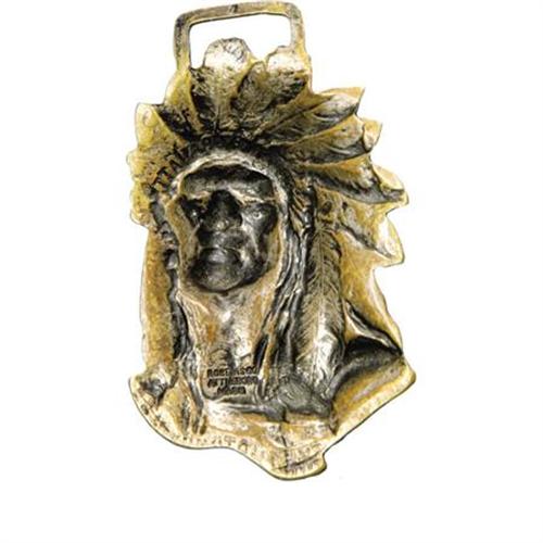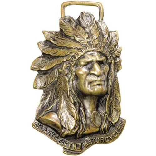 <B>Circa 1910 Outstanding Bronze Indian Motorcycle Watch Fob.</B></I> Bronze, 43 mm x 60 mm. "Frank P Gravatt Atlantic City Motorcycles"<B> </B></I>circa 1910 advertising watch fob. "Robinson Attleboro Mass" stamped on the inside of this outstanding watch fob, a highlight of one's collection and one of the finest we have ever handled.<BR><BR><b>Shipping:</b> Coins & Currency (<a target="_blank" href="http://www.heritageauctions.com/common/shipping.php">view shipping information</a>)