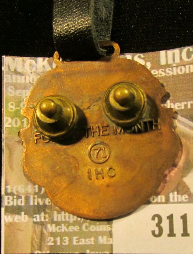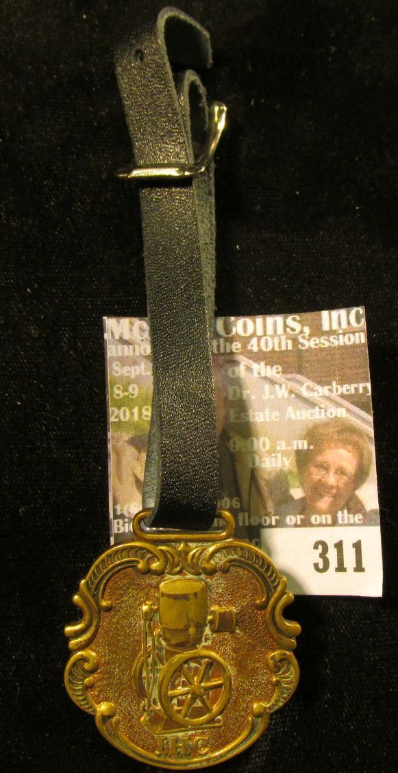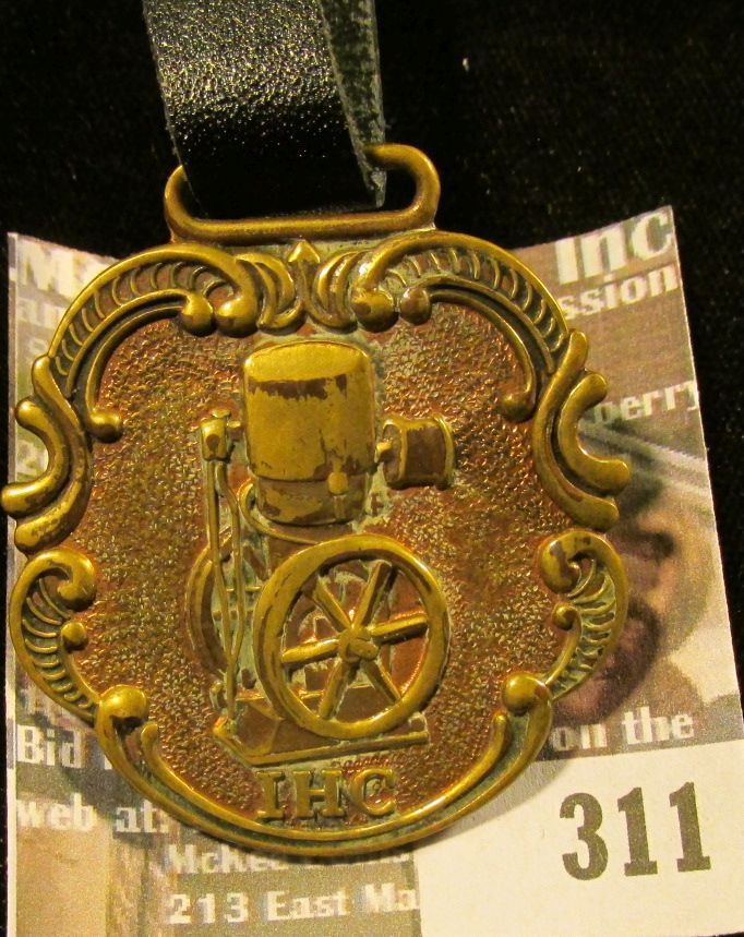 Watch Fob with leather strap "I.H.C." depicts a Steam Engine.
