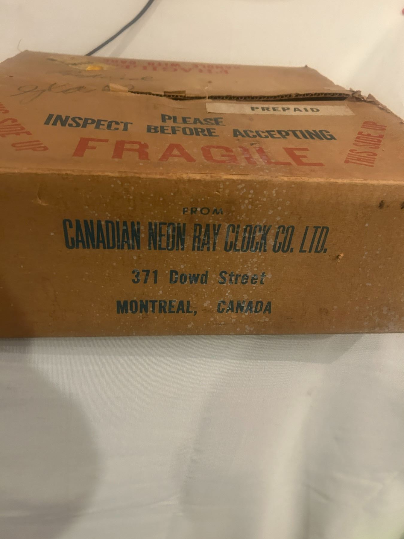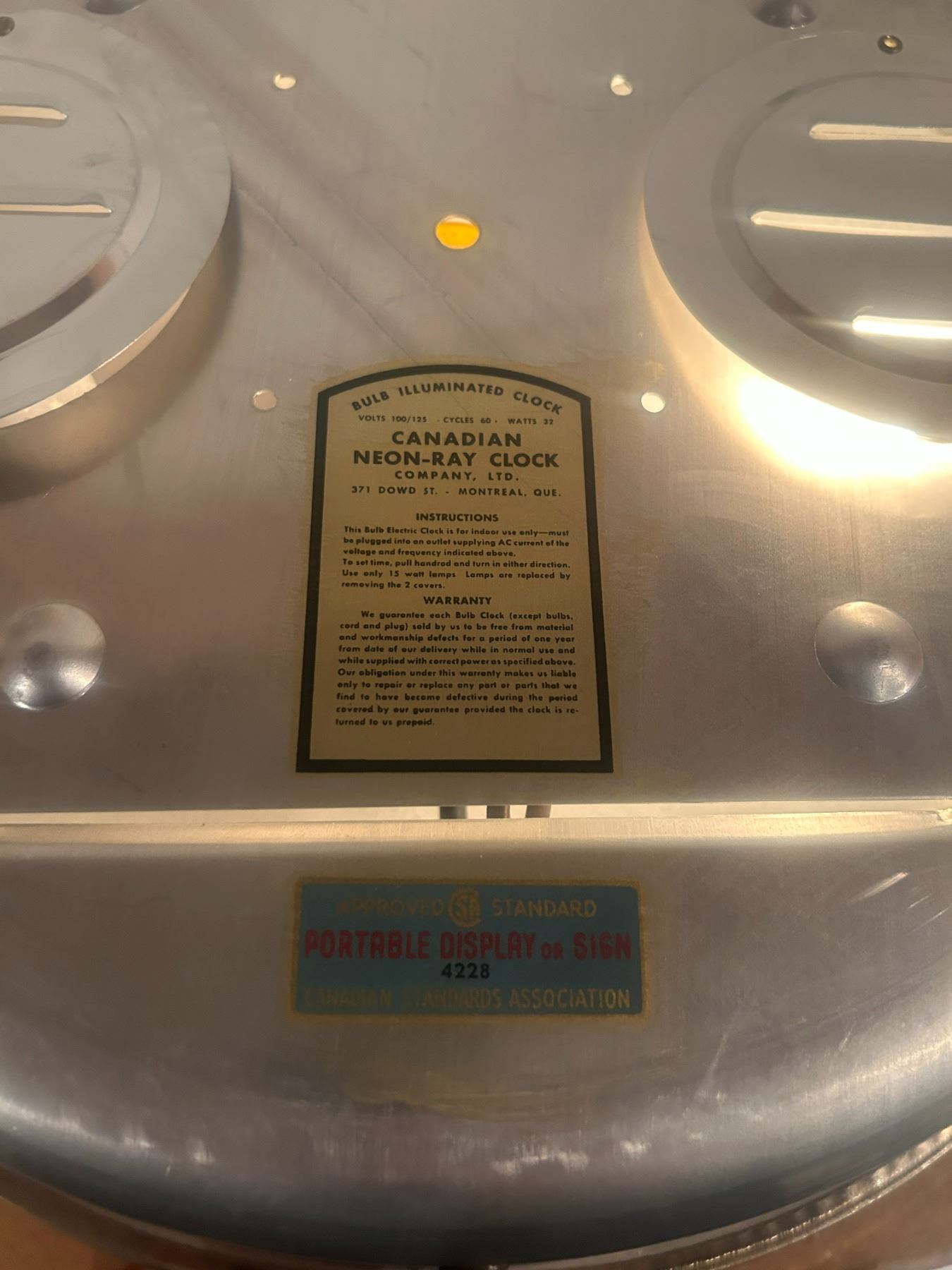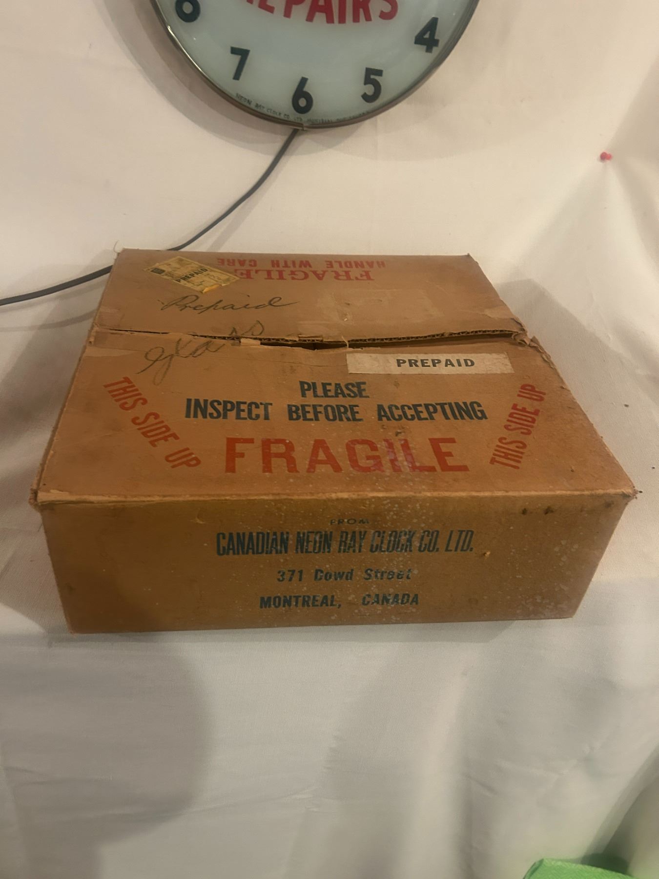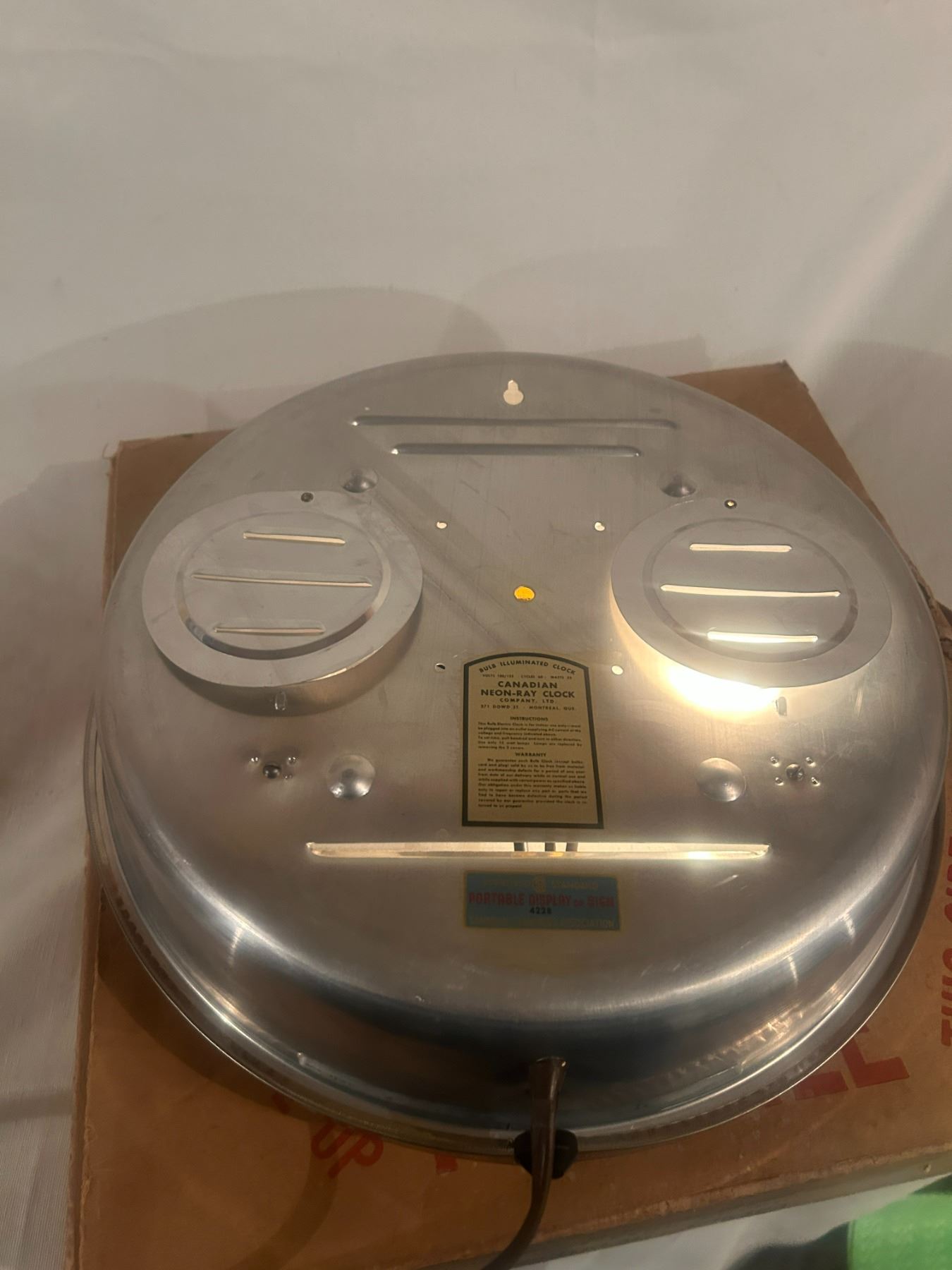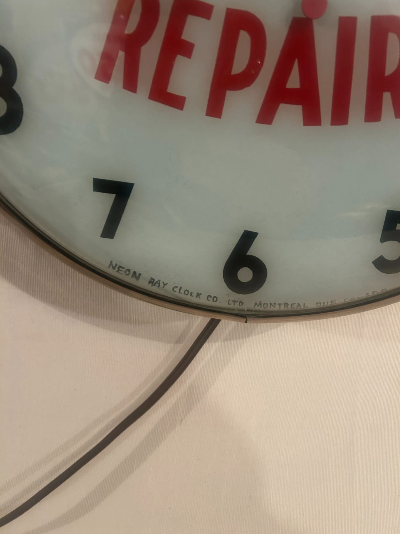 Watch Repairs clock - 14-1/2" across, working, original, Neon Ray Clock Comp., with original box