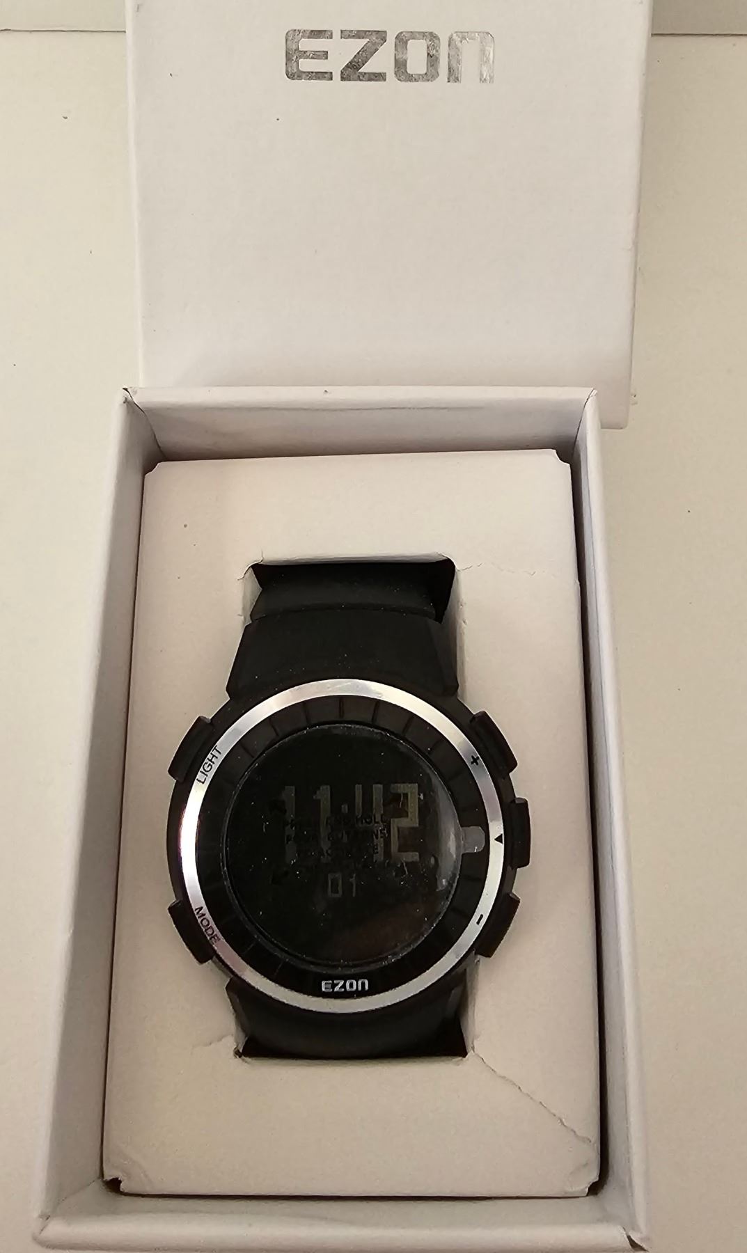 Ezon, Watch T029, Has Clock, Pedometer, Stopwatch, Calorie Counter, Waterproof, Open Box, Like New Condition