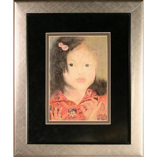 ?Watching and Waiting? is a beautifully original pastel drawing done by the talented R. Brown. The drawing depicts a little Asian girl pressing her hands up against the pane of a window, as she watches and waits for someone or something. It seems to be snowing outside for the white flakes are clearly visible against the darkness of her hair, and perhaps that is what holds her attention. Another clue that it is cold outside is the fact that the upper right hand corner of the windowpane has been frosted over, obscuring part of her head. She is dressed in vibrant and rich colors, which might be significant depending upon her cultural background. She wears a pink clip in her hair, which matches her rosy lips and cheeks and completes her cute appearance. Brown has truly captured the curiosity of a child in the intense almond shaped eyes that gaze to the left of the picture plane. The only thing that holds this little girl back is the windowpane that her little hands are pressing against. The smooth and velvety texture of the medium is accomplished through blending the different colors together and through the use of a soft paper. This piece has been double matted with a charcoal grey bottom mat and a black suede top mat, both of which nicely complement the shadows and darker tones of the drawing. The sleek silver wood frame, with its black inner liner, that houses this delightful character study adds a more modern air to the piece while playing a more neutral part to let the drawing ...