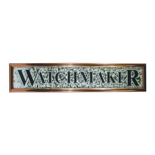 Watchmaker Glue Chip Reverse Glass Sign, with period copper frame. Western Sandblasting Co., Chicago, IL. Mint condition. 38 X 8 inches overall.