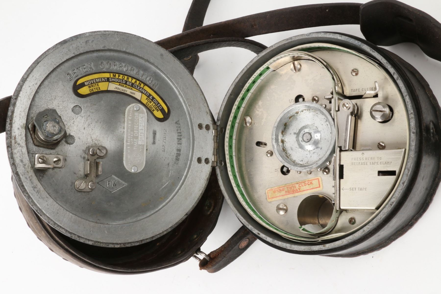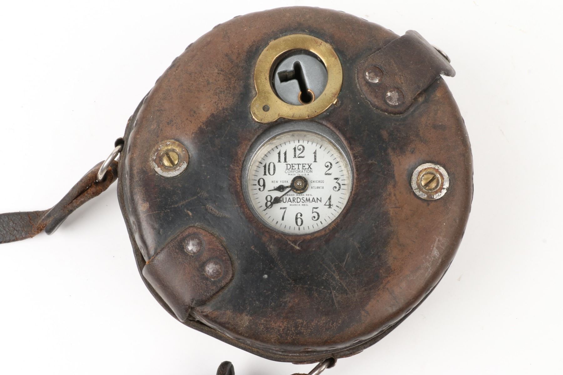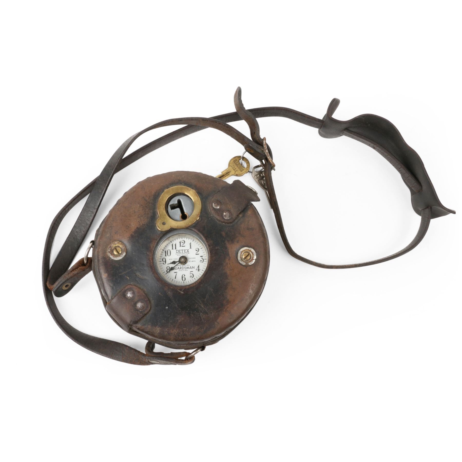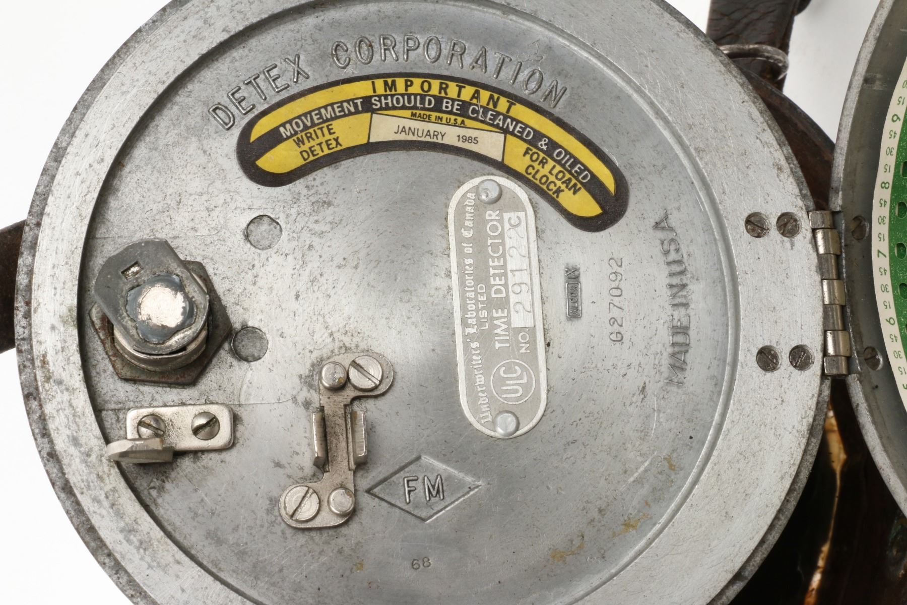 American. Circa 1930. Detex. Watchman time recording device. 22" x 2" x 2". Keys included. 75-100.