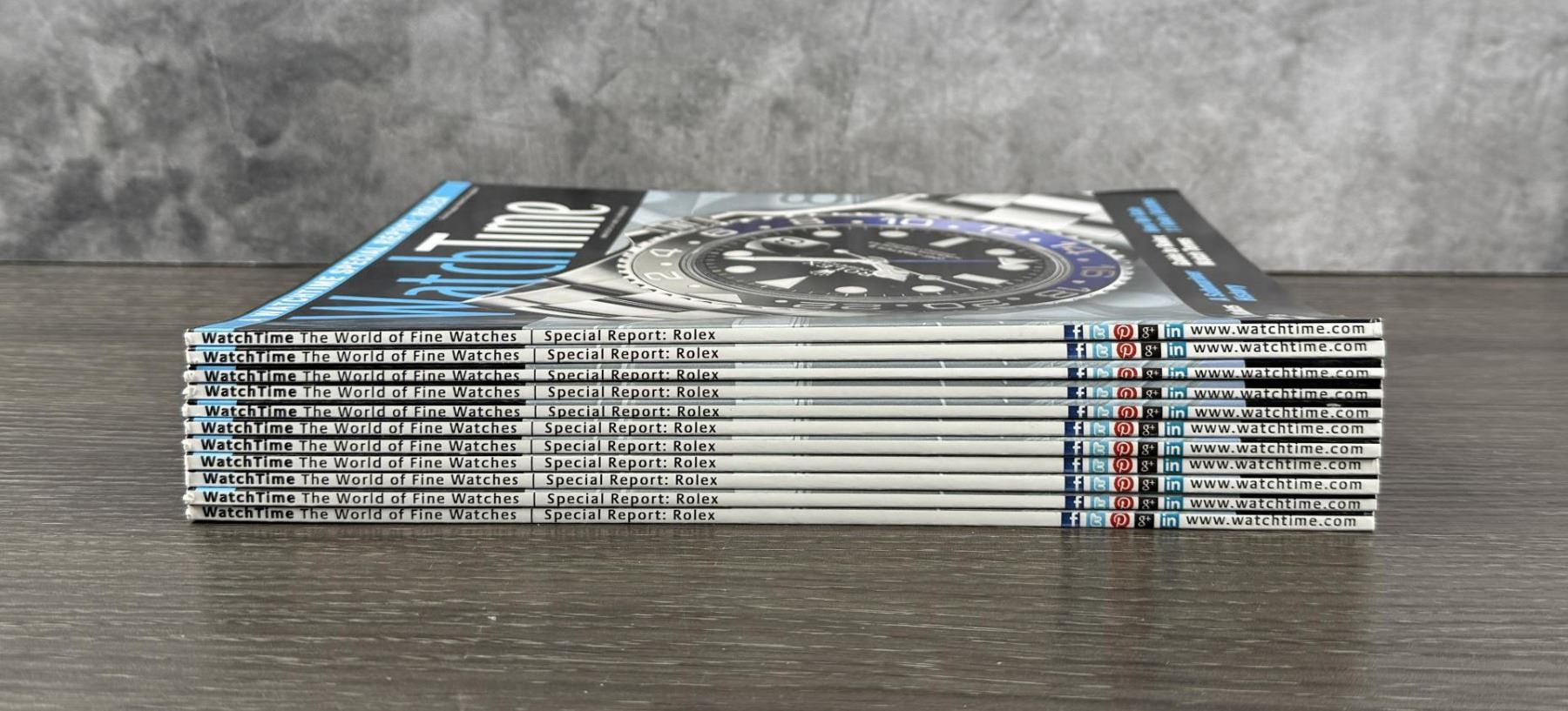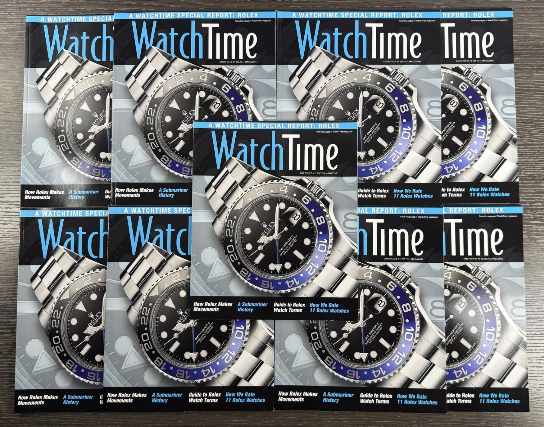 Grouping of Watchtime magazine focusing on Rolex.