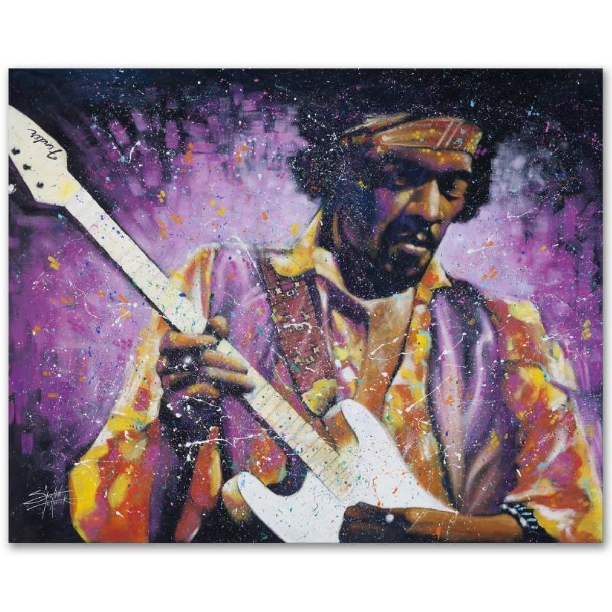 With bright colors and expressive lines, Stephen Fishwick puts a unique spin on pop culture portraits. "Watchtower" is a limited edition giclee on stretched canvas, numbered and bears the artist's authorized signature. This piece comes gallery wrapped! Includes Letter of Authenticity. Measures approx. 20" x 16" (image). This item requires special handling and may have a longer than usual turnaround.