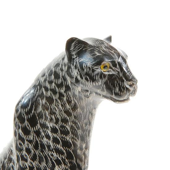 Excellent piece; finely carved Thai WATERBUFFSCRIM image cheetah of water buffalo horn; 7";