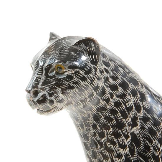 Excellent piece; finely carved Thai WATERBUFFSCRIM image cheetah of water buffalo horn; 7";