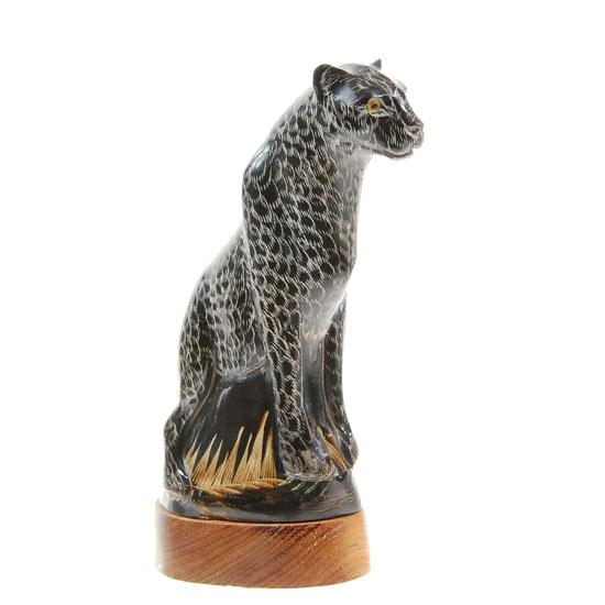 Excellent piece; finely carved Thai WATERBUFFSCRIM image cheetah of water buffalo horn; 7";