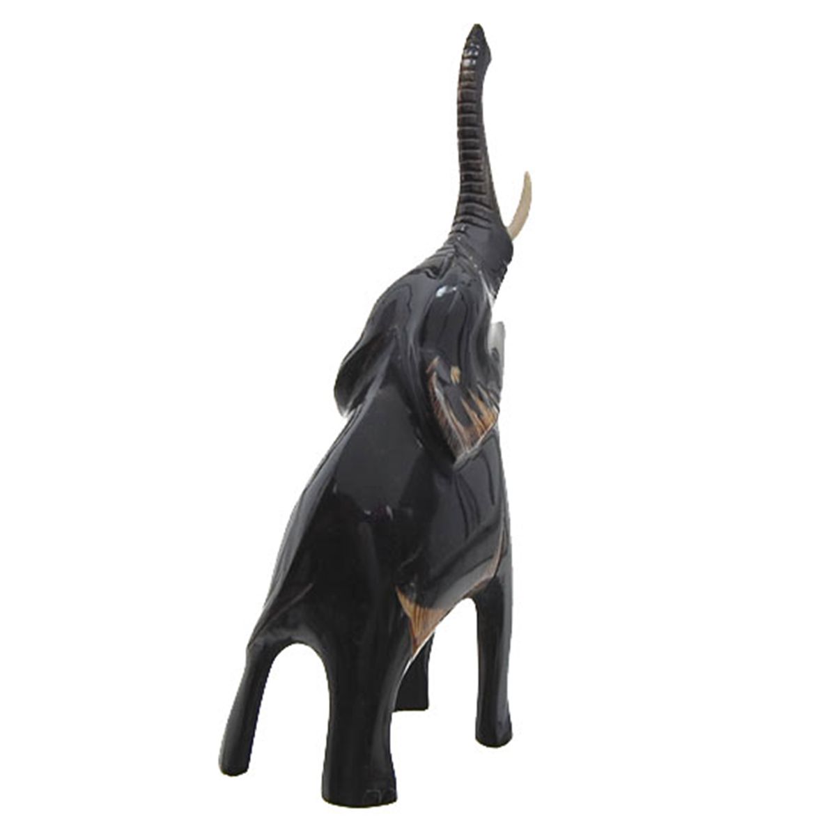 Excellent piece; finely carved Thai scrimshaw image of elephant on water buffalo horn; 6"