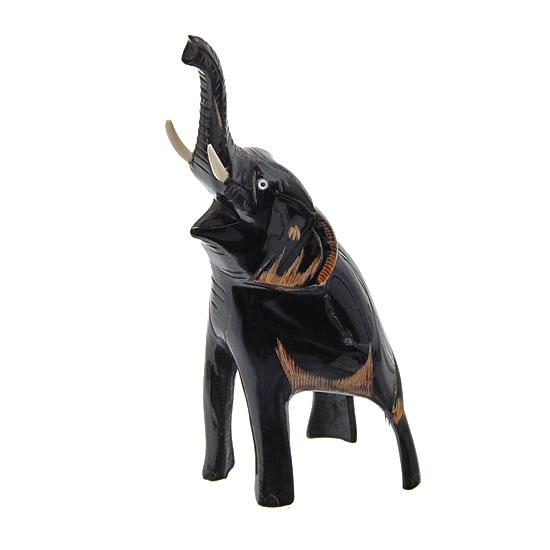 Excellent piece; finely carved Thai scrimshaw image of elephant on water buffalo horn; 6"