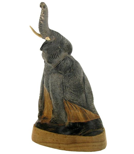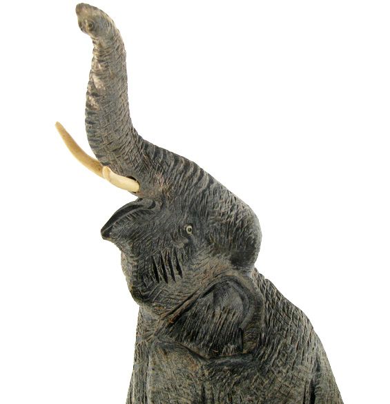 Excellent piece; finely carved Thai scrimshaw in elephant image on Scarce water buffalo horn; 9"