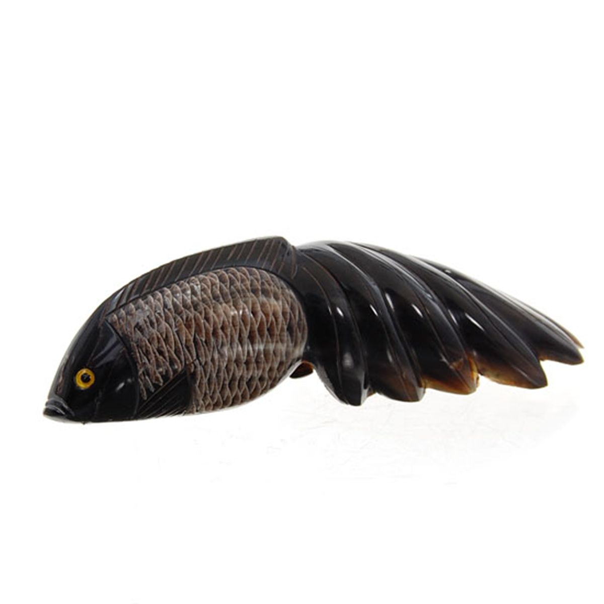 Excellent piece; finely carved Thai WATERBUFFSCRIM in koi image on RARE water buffalo horn; 6";
