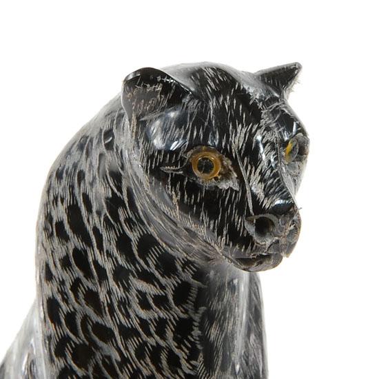 Excellent piece; finely carved Thai WATERBUFFSCRIM in leopard image on water buffalo horn; 6"