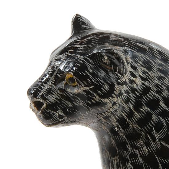 Excellent piece; finely carved Thai WATERBUFFSCRIM in leopard image on water buffalo horn; 6"
