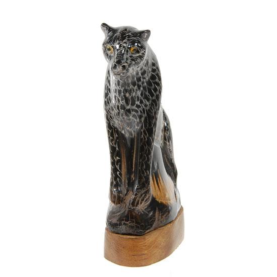 Excellent piece; finely carved Thai WATERBUFFSCRIM in leopard image on water buffalo horn; 7"