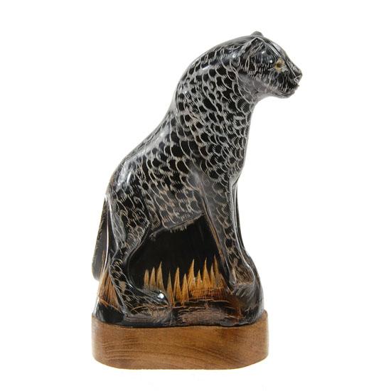 Excellent piece; finely carved Thai WATERBUFFSCRIM in leopard image on water buffalo horn; 6"