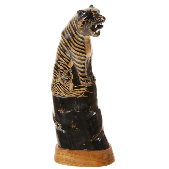 Excellent piece, finely carved Thai WATERBUFFSCRIM in tiger image on water buffalo horn, 9"