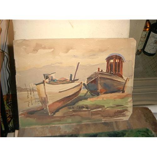 This is a real nice water color of Boats done by Frank Hyman. It was giving to my client in 1941 as a gift, as he is his uncle. Check out others</em></td>