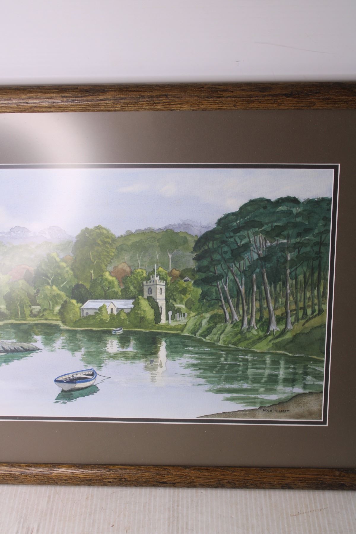 Water Color Painting of St. Just Church in Roseland Cornwall by Hugh Gilbert - 18 1/2" x 21 1/2"