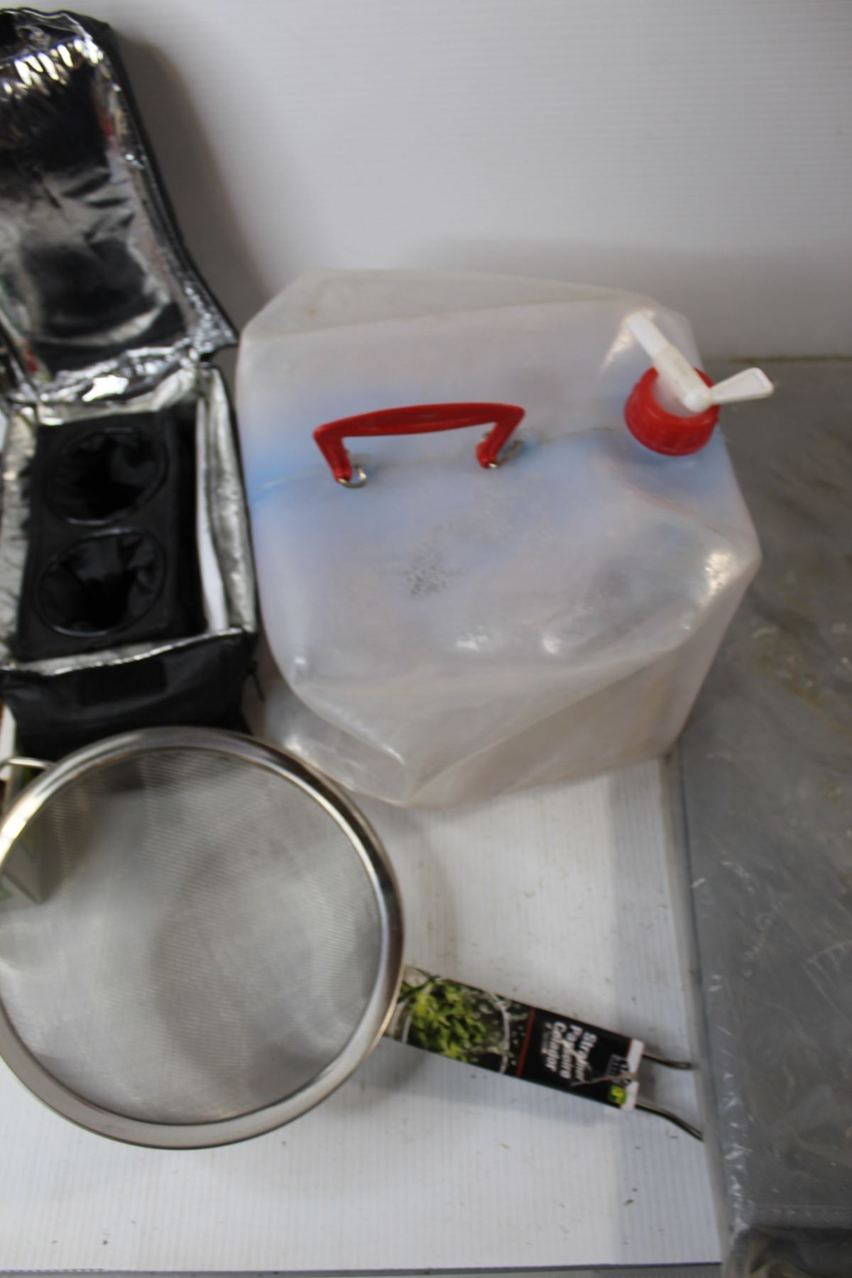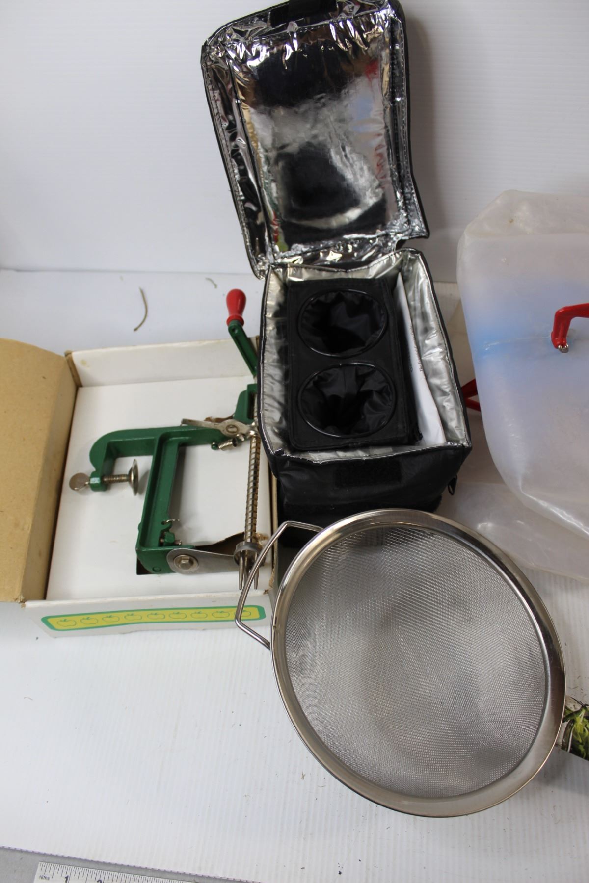Water Container, Cooler Bag, Strainer, Apple Parer and Misc.