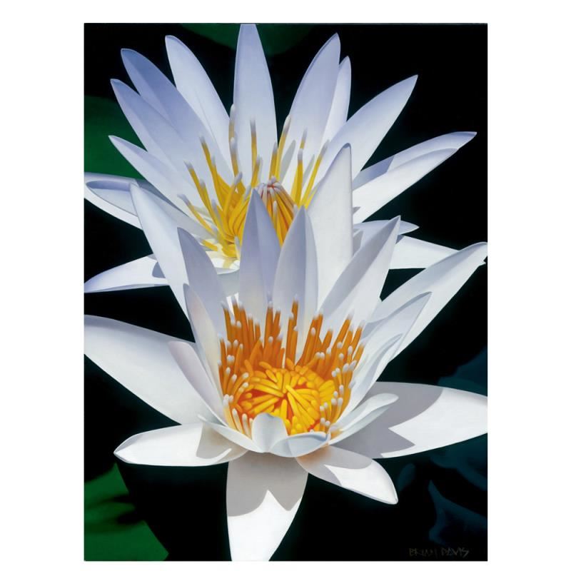 "Water Lily Duet" is a limited edition giclee on canvas by Brian Davis, numbered and hand signed by the artist. This piece has a 2" border and may be framed or gallery wrapped based on preference. Includes Certificate of Authenticity! Measures approx. 30" x 40" (image).